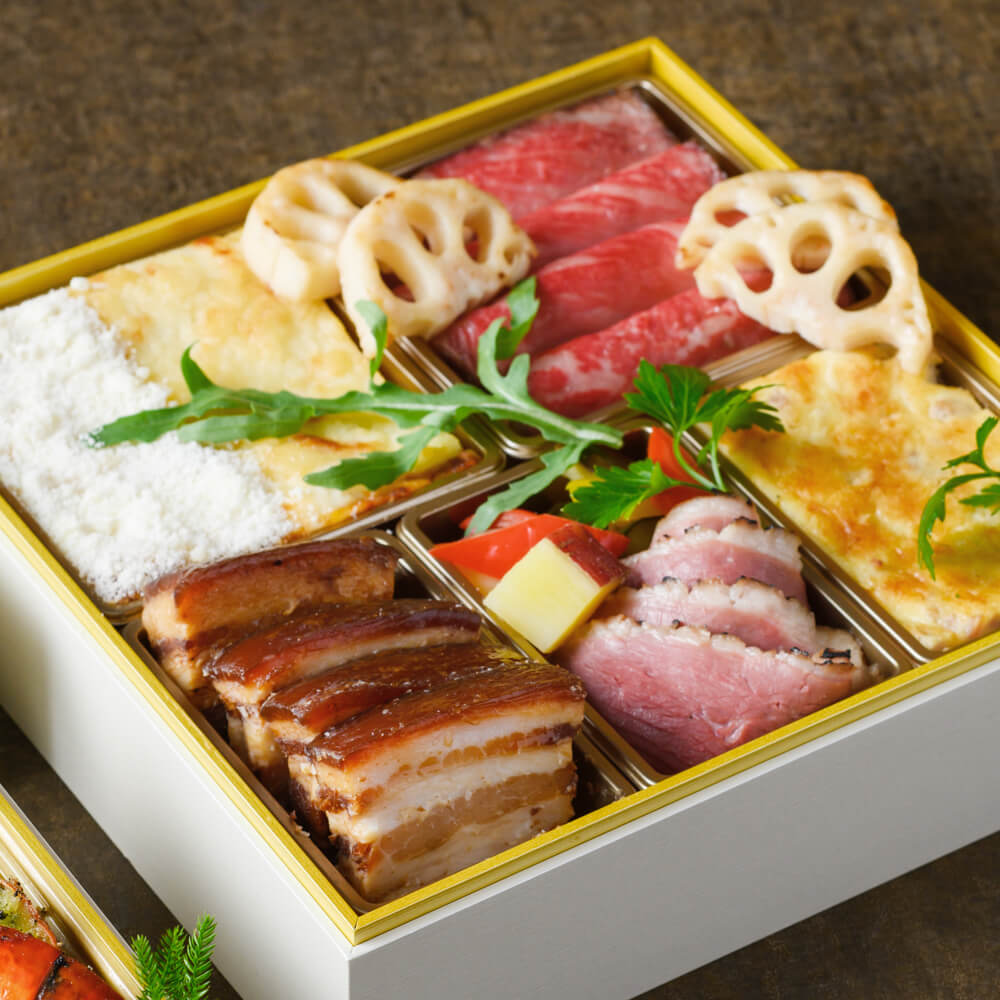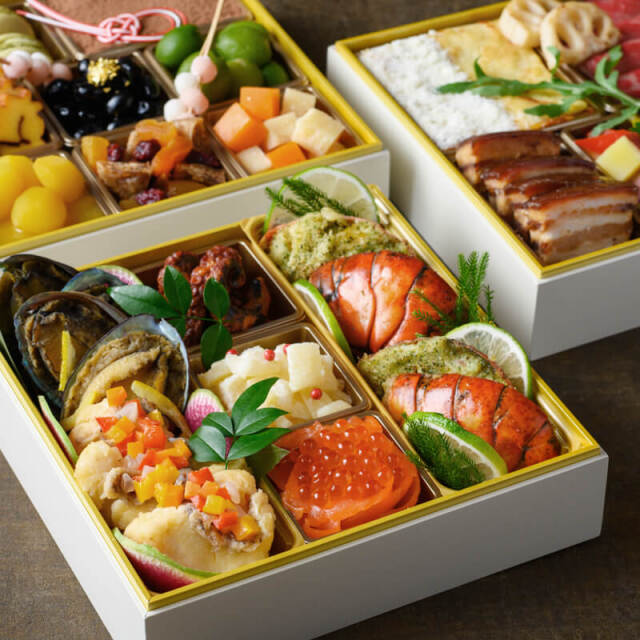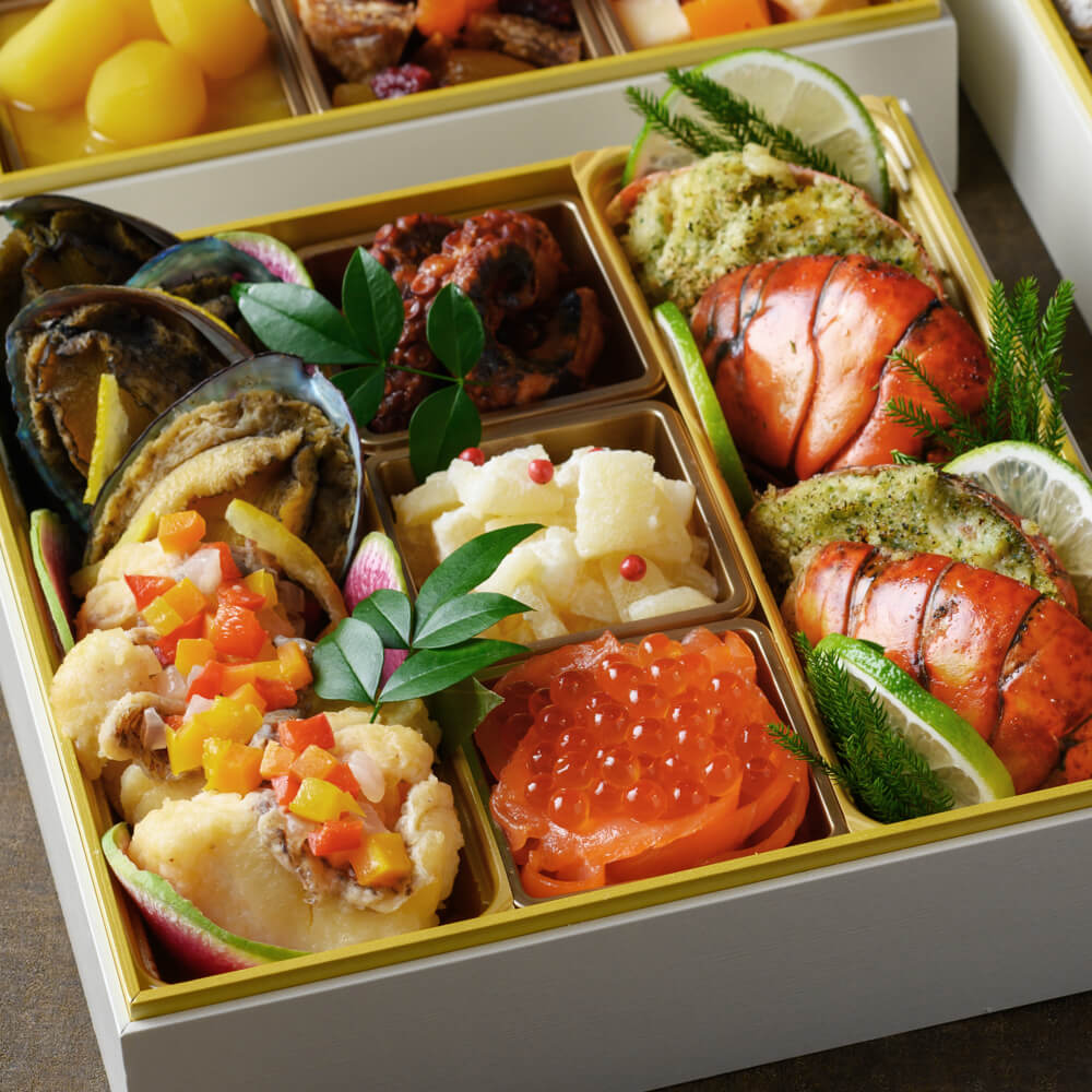 伝統的なおせち料理を中心に、贅沢食材を盛り込んだ参の重です。