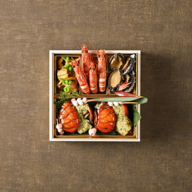 鮑や車海老など高級海鮮を中心に盛り込み、新年の席を華やかに彩る壱の重です。